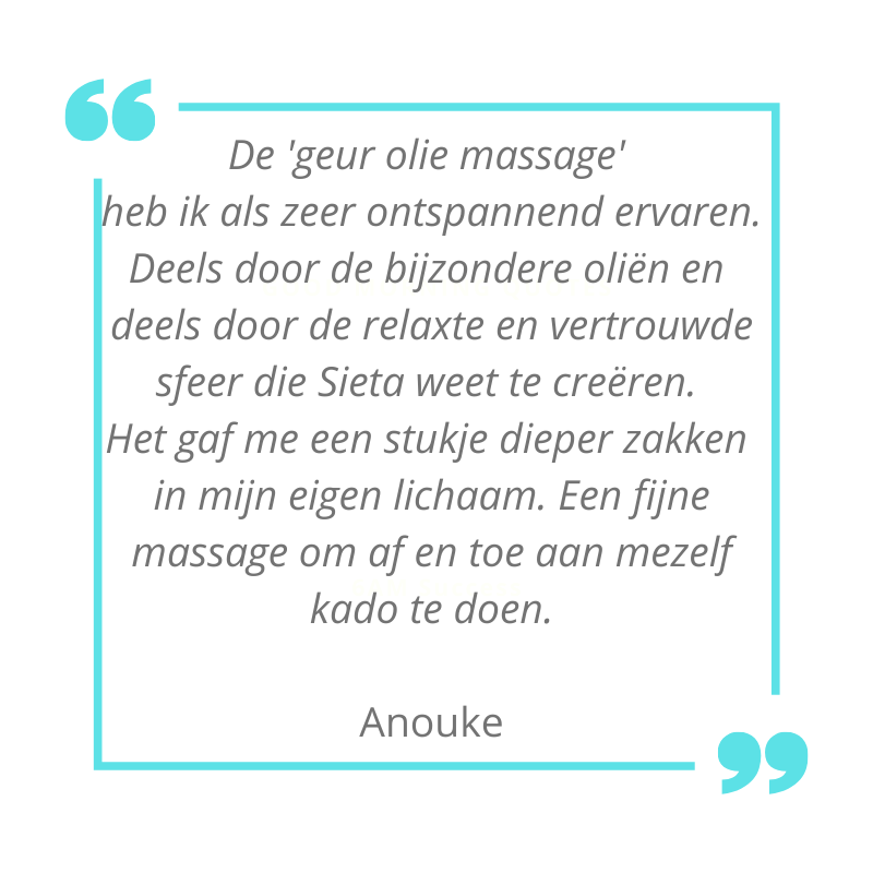 We leven in een drukke maatschappij met hoge verwachtingen. Voor ons zenuwstelsel is dat hard werken. Het doel van deze massage is het zenuwstelsel tot rust te brengen en zo het zelfherstellend vermogen van het lichaam te versterken.